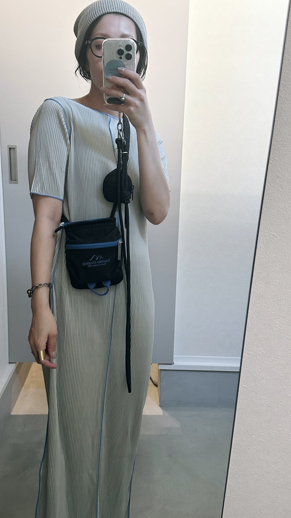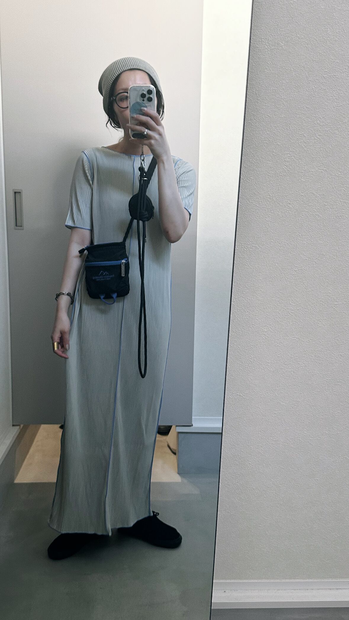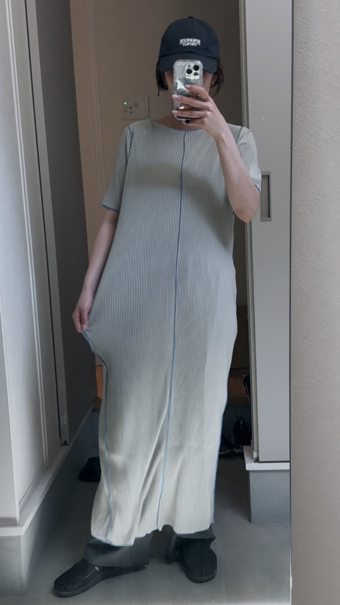 すっきりしたIラインのロングワンピース