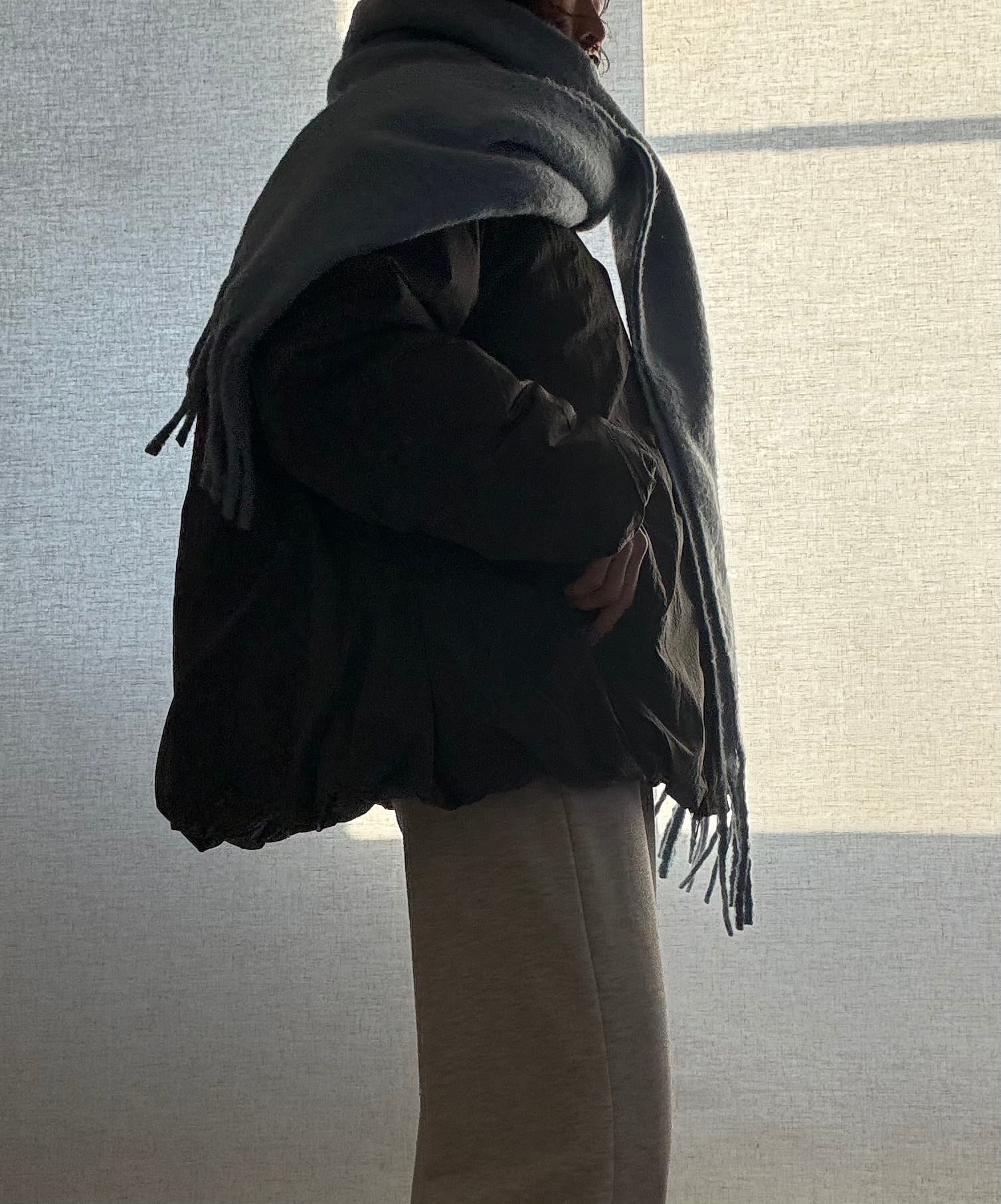 ファイバーダウンで暖かくシャカシャカとした手触りのダウンジャケット
