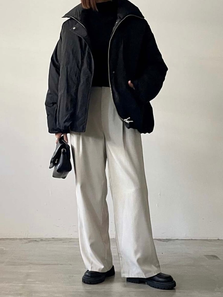 バルーンシルエットでほどよく丸みがあり大人可愛い一着