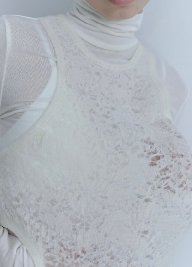 ウール混のレースに繊細なチュールが重なった生地を使用しました。
