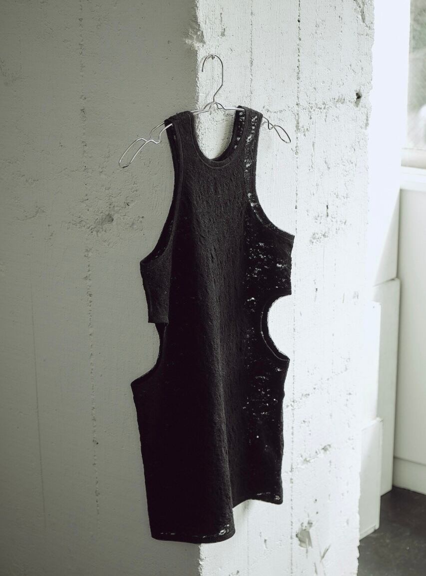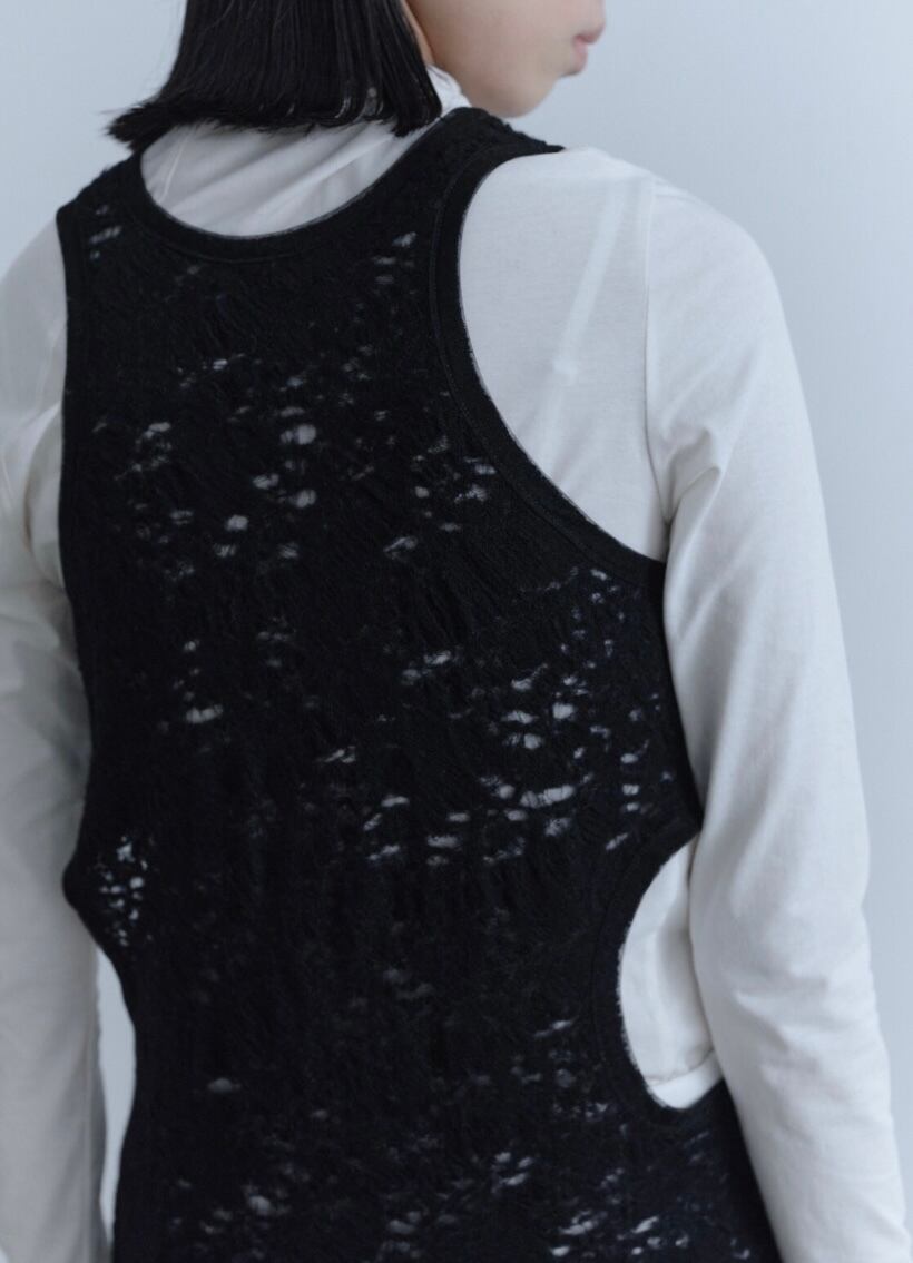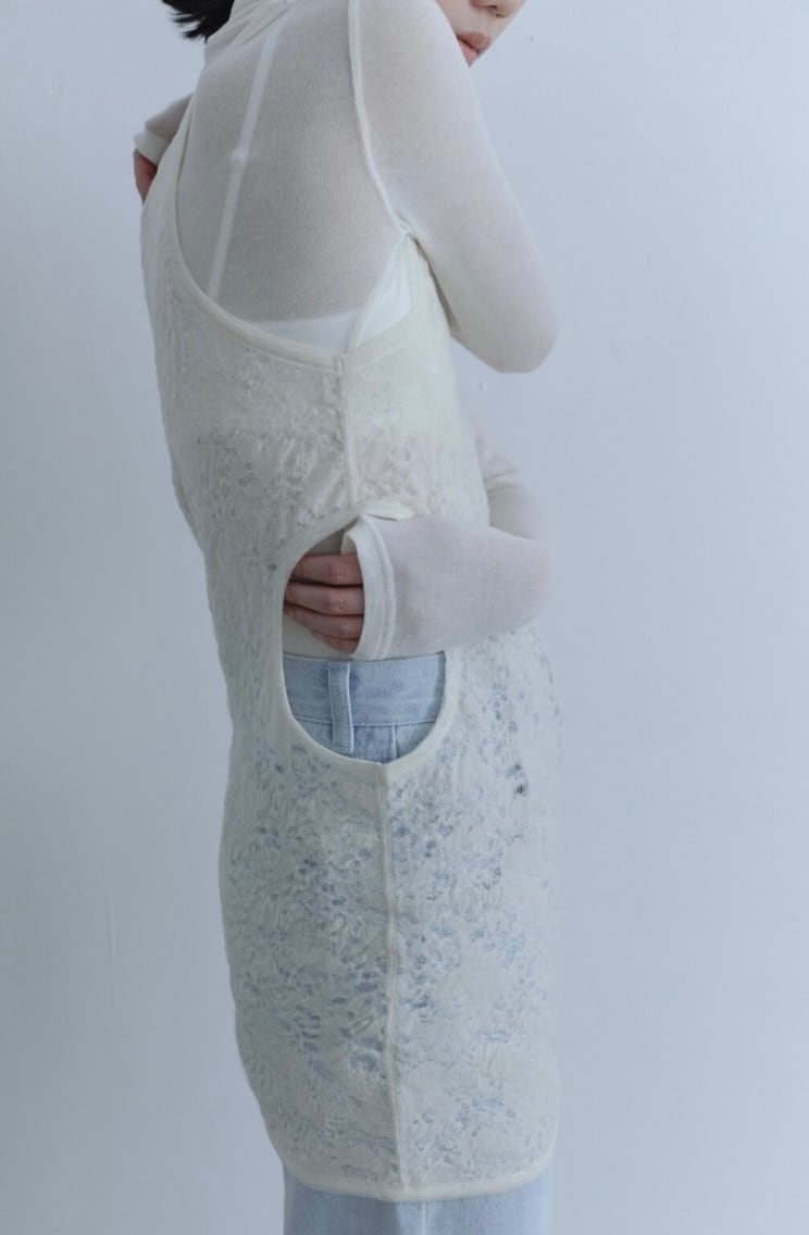 Side Hole Wool Blend Lace One piece/サイドホールウールブレンドレースワンピース