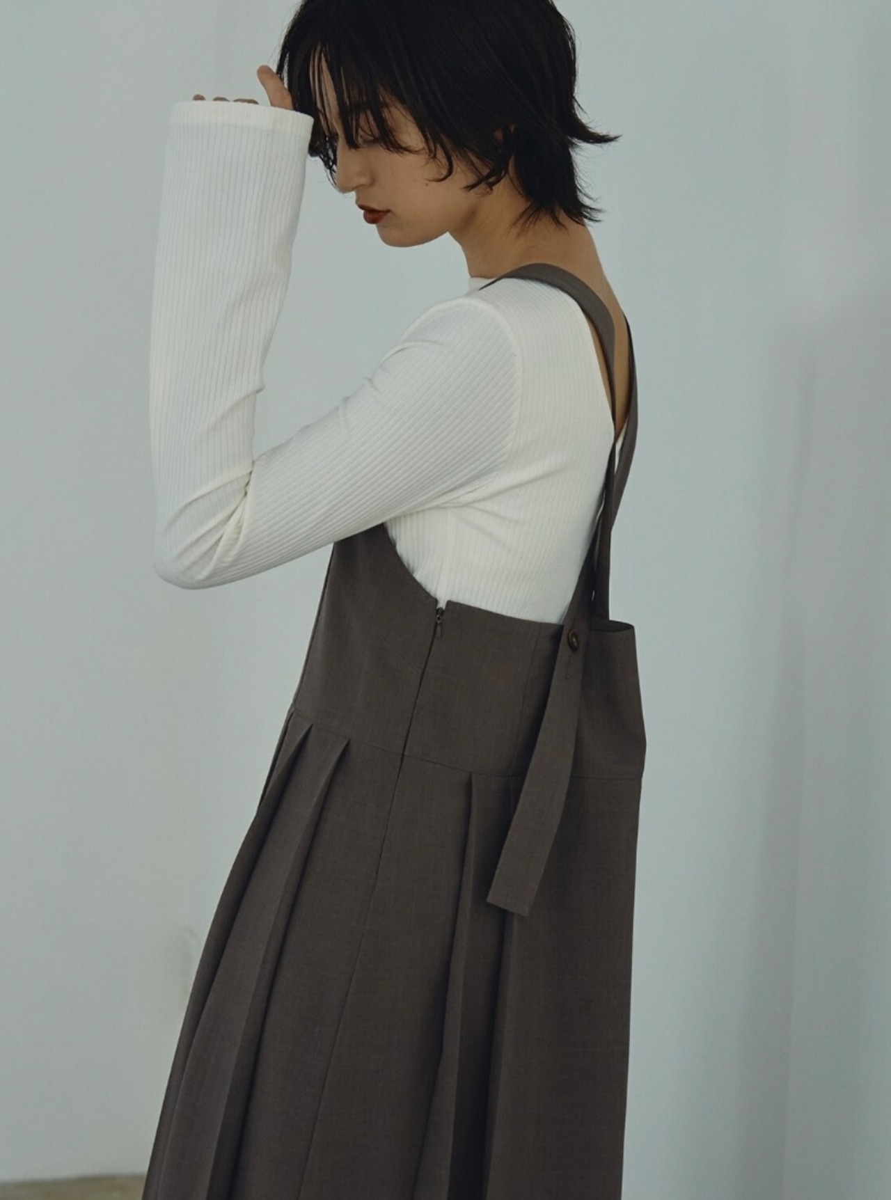 リブ編のカットソーを使用しており、しっかりした素材感の中にも体になじみやすい