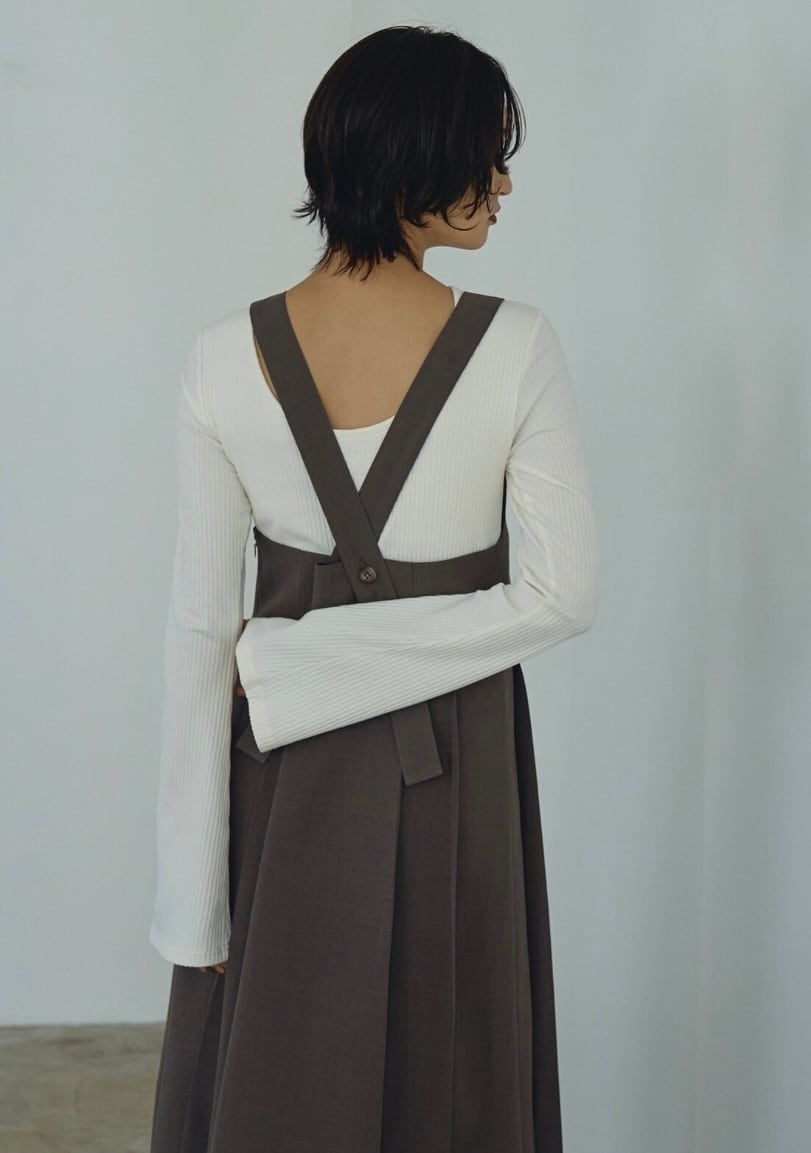 Flare sleeve Back open Rib tops / フレアスリーブバックオープンリブトップス