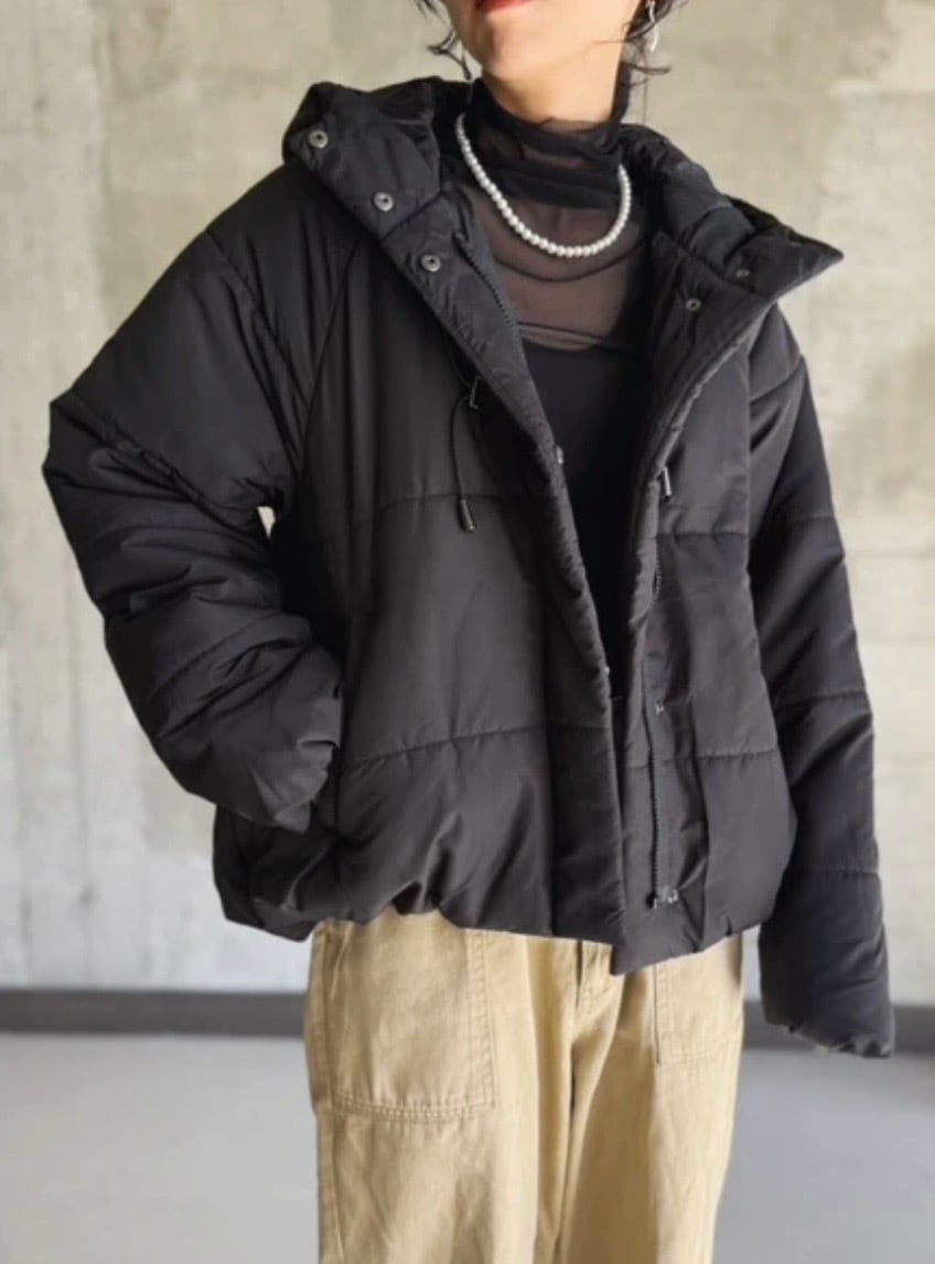 フード付きでカジュアルにもきれいめにも合わせやすいデイリー使いにぴったりなアウターです。