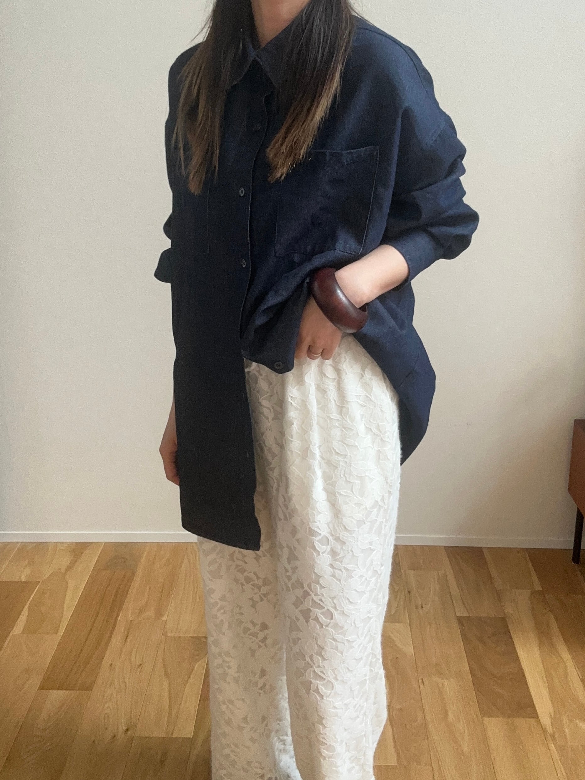 ウエストは総ゴムでリラックス感がありつつ、レースを重ねたデザインが見た目に華やかさをプラスします。
