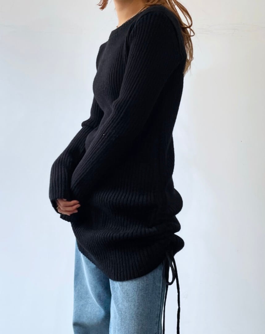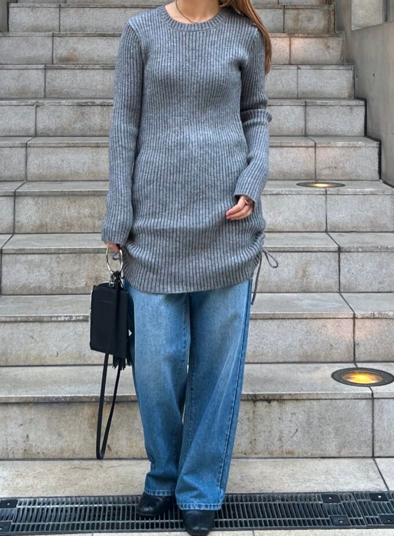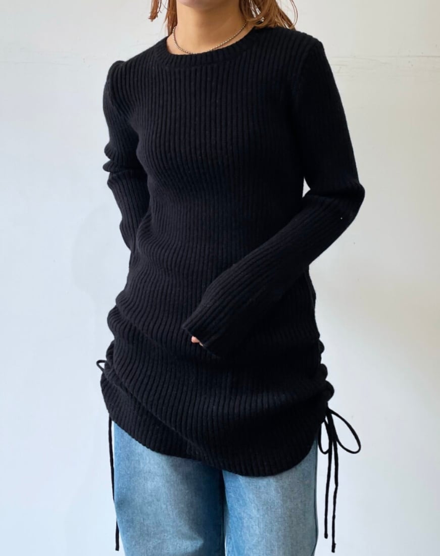 ・モチモチのリブニット素材が伸縮性高く快適な着心地です