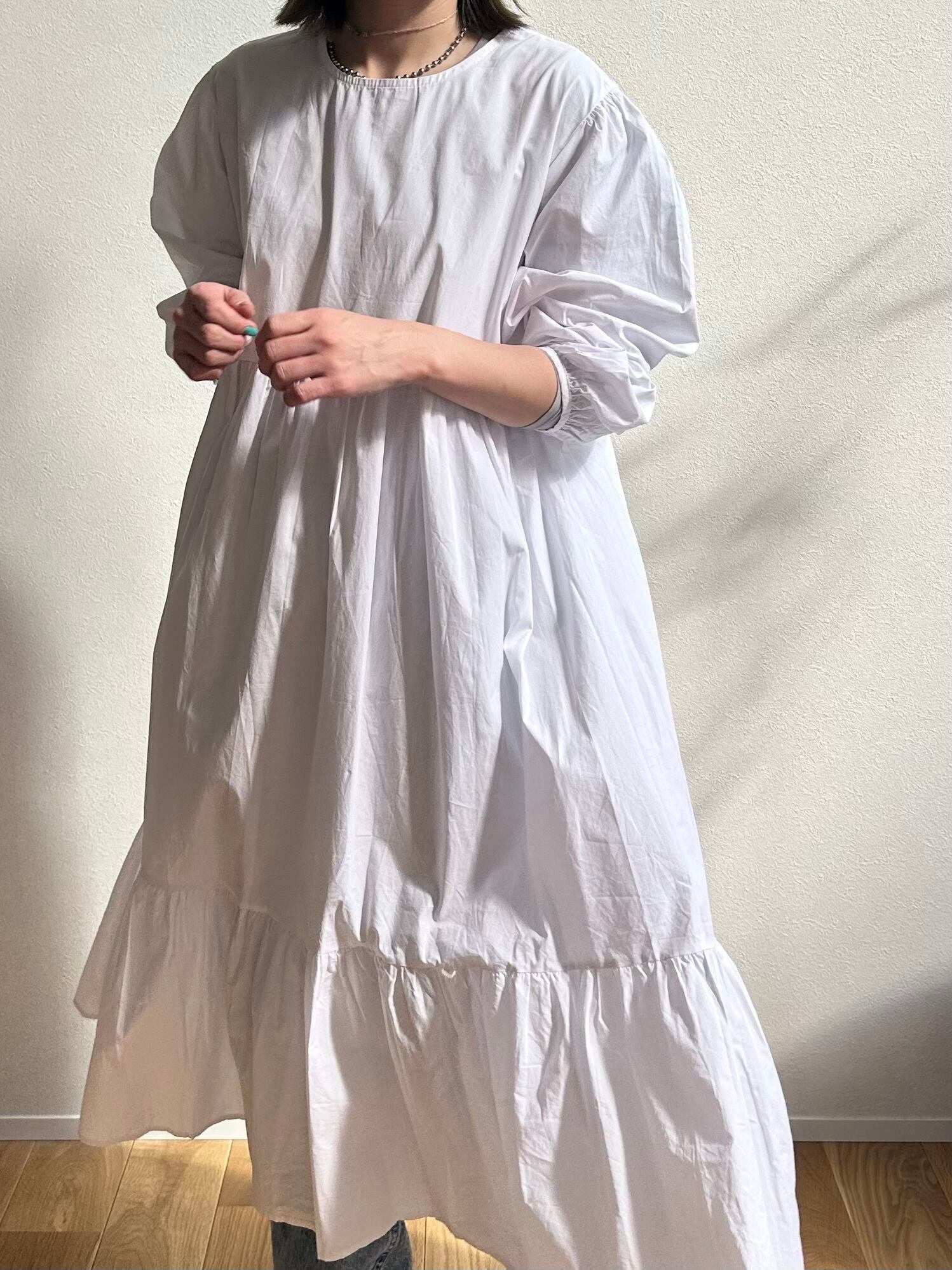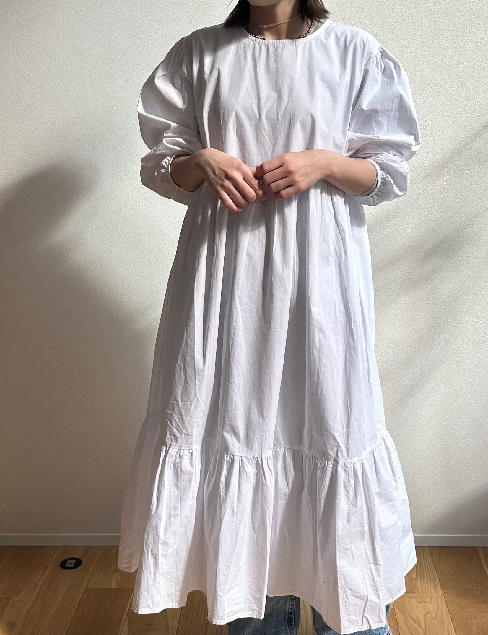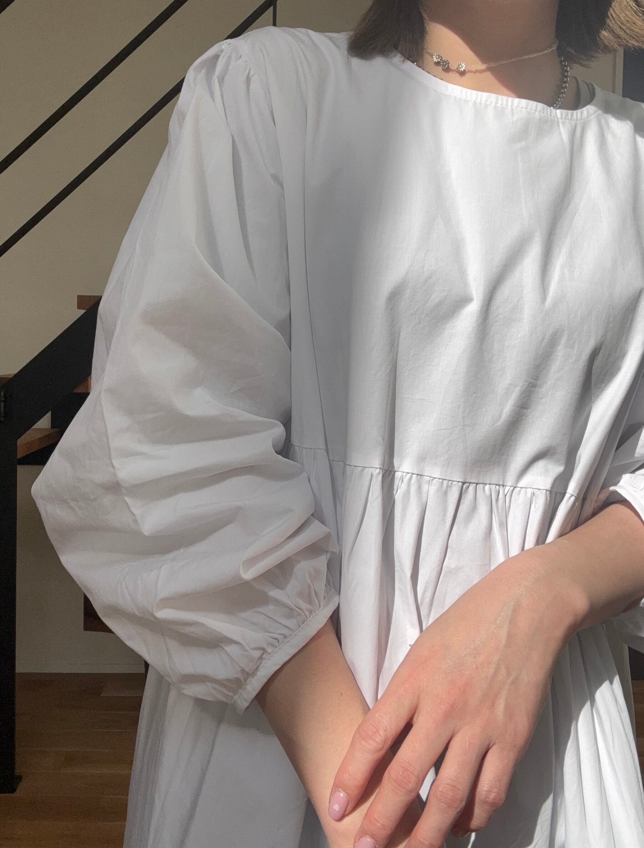 ギャザーの切り替えデザインがポイントで甘すぎない大人かわいいを演出してくれます。