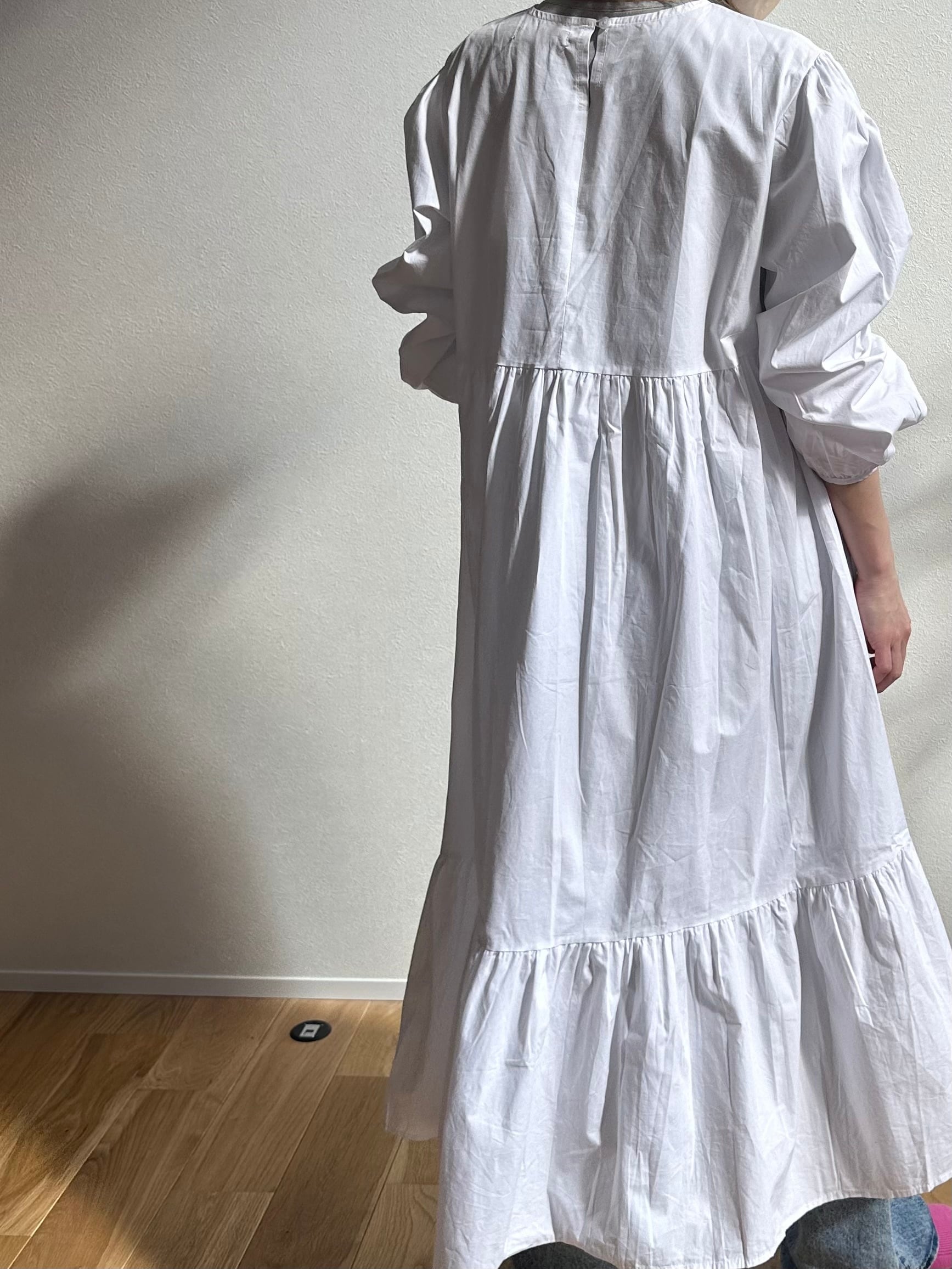 バスト下部分は絞ってウエストマークしてあり、すっきりしたシルエットに見えます。
